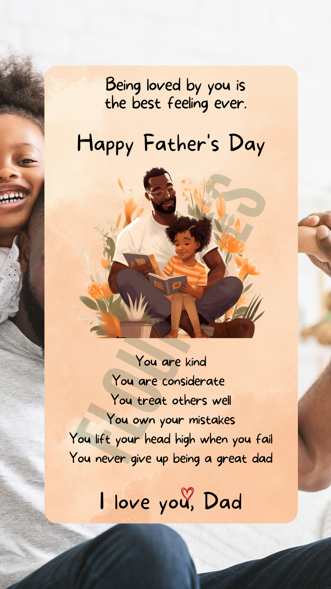 Get this beautifully designed Father's Day E-message to show dad some love. A reminder that all he has done is seen and not hidden. Every dad deserves a chance to be loved.