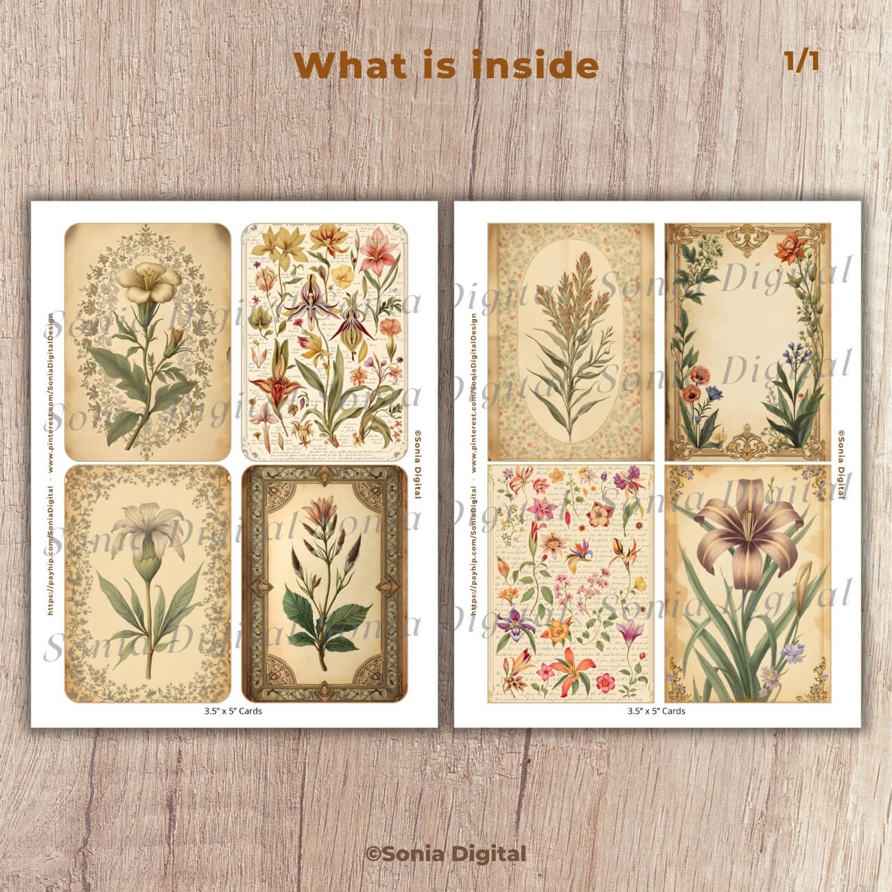 2 printable pages, containing 8 Cards 3.5”x5” “Retro Botanical” Collection, for Scrapbooking and Junk Journal creations. Letter size (8.5”x11”). Commercial use license included*