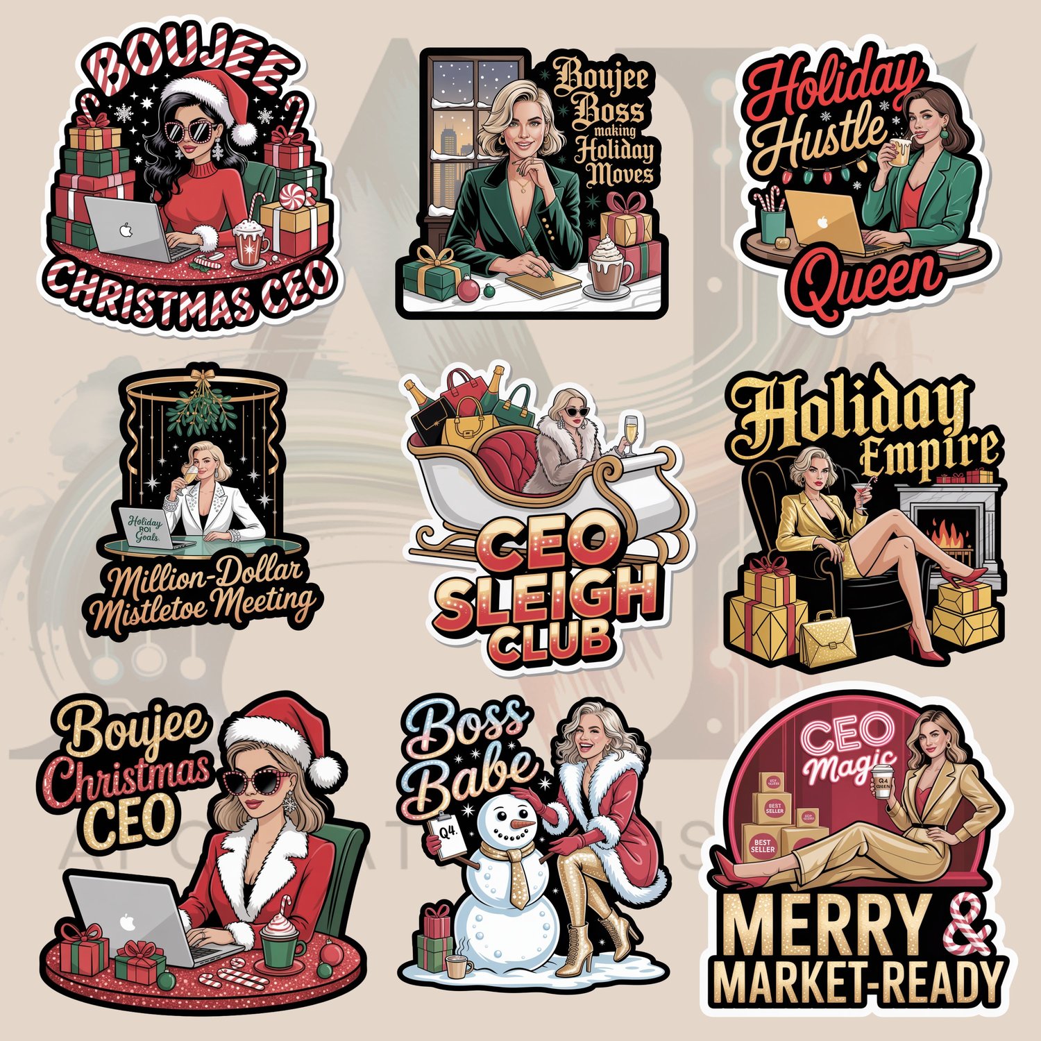 Get ready to crush your Q4 goals and celebrate the season with this fierce and festive Holiday Boss Babe Sticker Bundle! This collection of 9 high-quality digital stickers features stylish, successful women dominating the holiday season, blending business ambition with Christmas chic. Perfect for the entrepreneur, CEO, or business owner who loves the hustle!