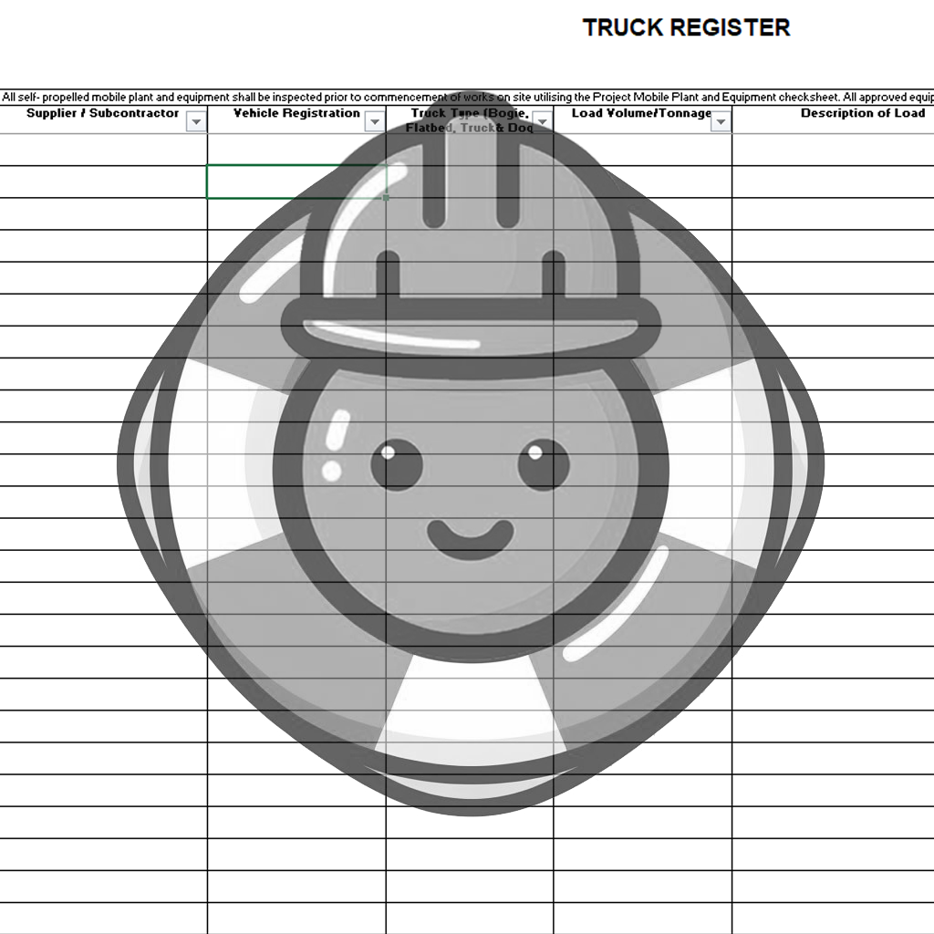 Simple Truck register used to monitors the incoming and outgoing loads onto and off-site. Includes areas for the tracking of Tonnage/Load and Docket No. for Fill/Cut material.