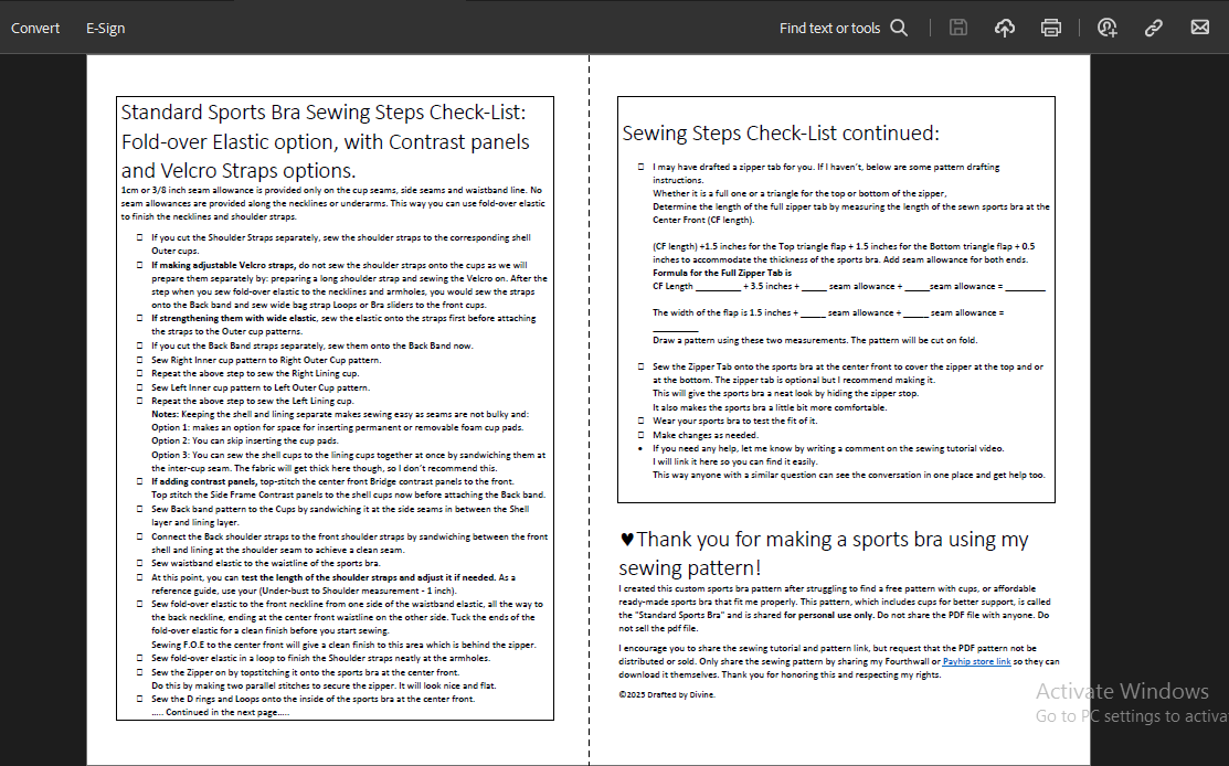 This is the written Standars Sports Bra Sewing Steps Instructions Checklist PDF.