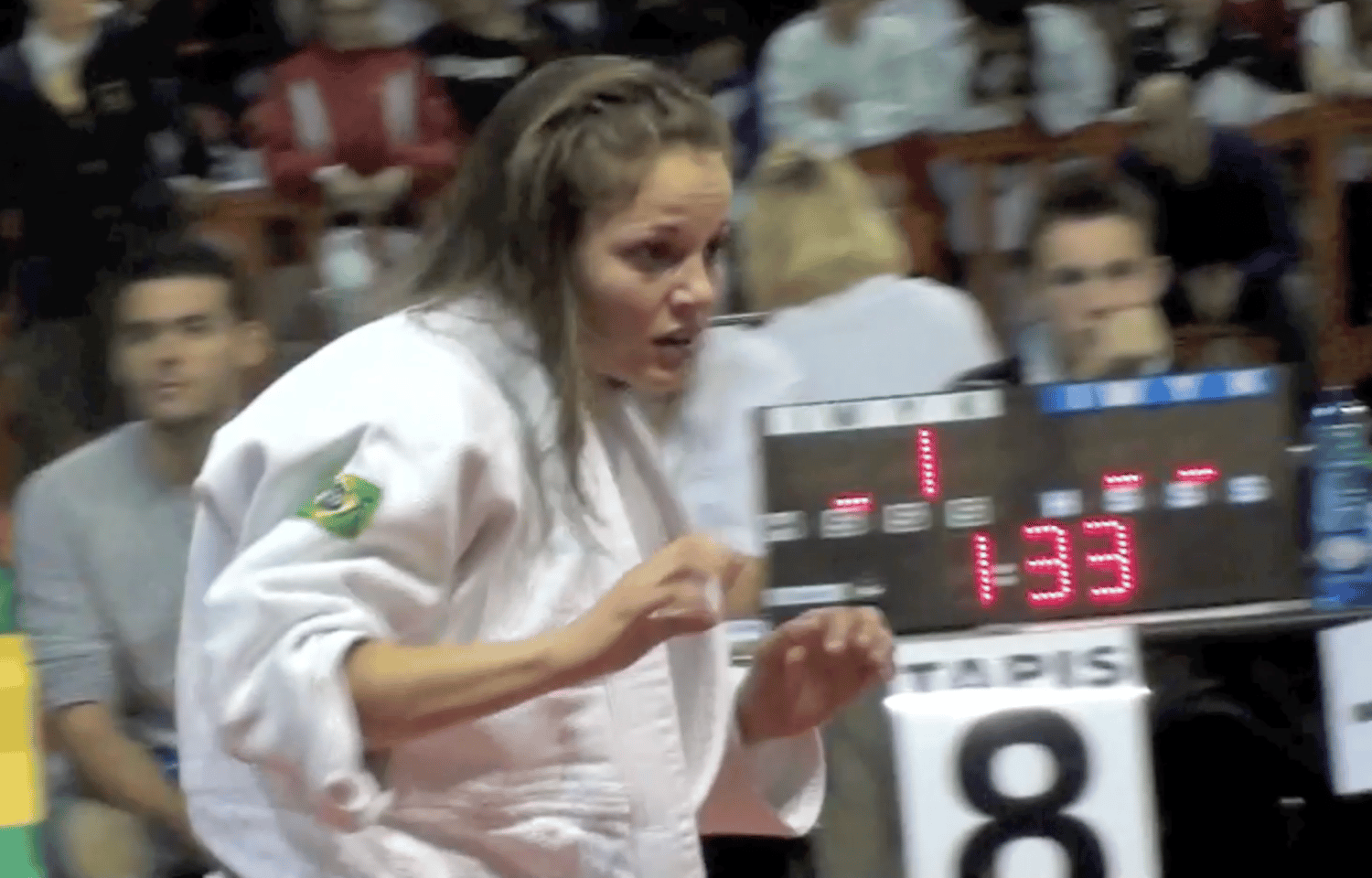 # national match (France / France) # long and furious judo brawl, between pretty athletes (sweet blonde / cute brunette) # both young women, of quite reserved appearance, appear immediately as real tigresses # it's definitively a "high intensity war" on the tatami 8, with a series of vicious attacks, especially several cruel shime waza attempts (chokes) # this two super athletes return blow for blow # one of them is led on the score & it becomes a little crazy, a war of agression # "now you agress her", claims a coach ... # furious match ends with points, but be sure loser is upset !!!! # a lot of amazing zooms and high definition quality #