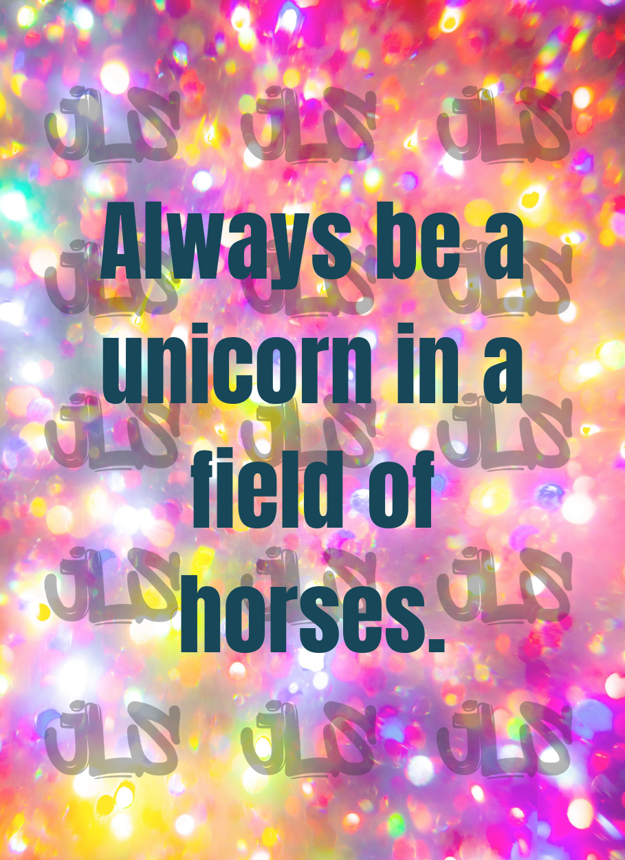 Description: A whimsical and empowering digital art print. The image could feature a stylized unicorn in a field of horses, using a magical, colorful palette. The quote would be in a charming script font. This is a great option for a children's room, a creative space, or as a gift for someone who needs encouragement to be unique.