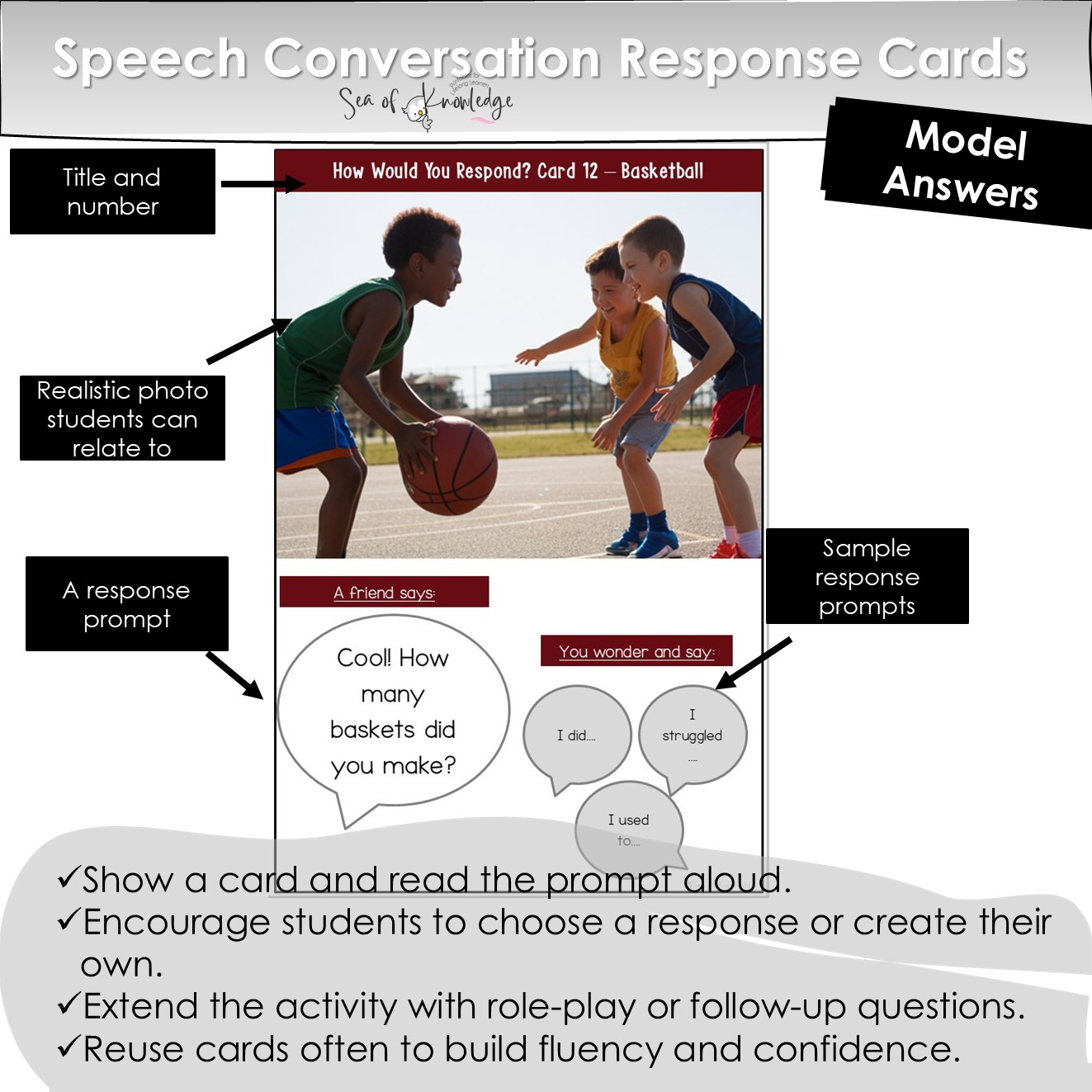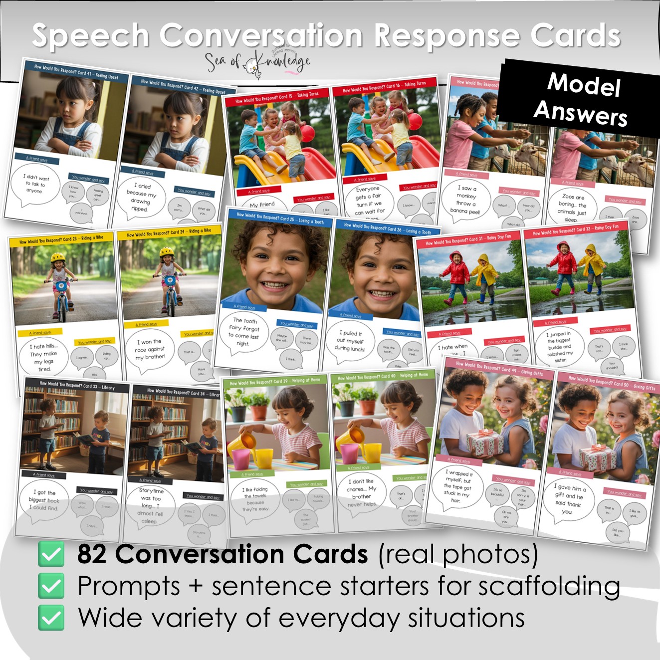 conversation starters for kids, conversation cards for kids, social skills conversation prompts, SEL conversation cards, social emotional learning speaking cards, how to respond activities, role play cards for kids, speech therapy conversation starters, ESL speaking cards, ELL conversation practice, oral language development cards, social scenario cards, kids communication prompts, sentence starter cards for kids, everyday situations speaking prompts, pragmatic language cards, friendship conversation cards, turn taking social skills cards, expressive language activities, how to be a good friend activities, conversation practice for ESL, classroom morning meeting conversation cards, speaking and listening cards for kids, kindergarten social skills activities, primary ESL conversation prompts, real life scenario cards for kids, dialogue practice cards, communication skills activities for kids, student talk prompts, English speaking practice cards.