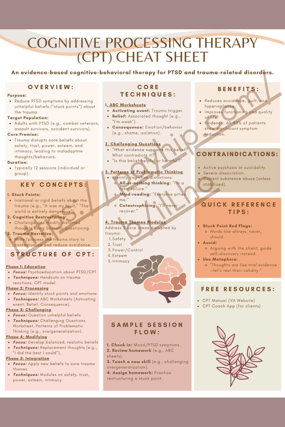 Cognitive Processing Therapy (CPT) Cheat Sheet: PTSD Resource