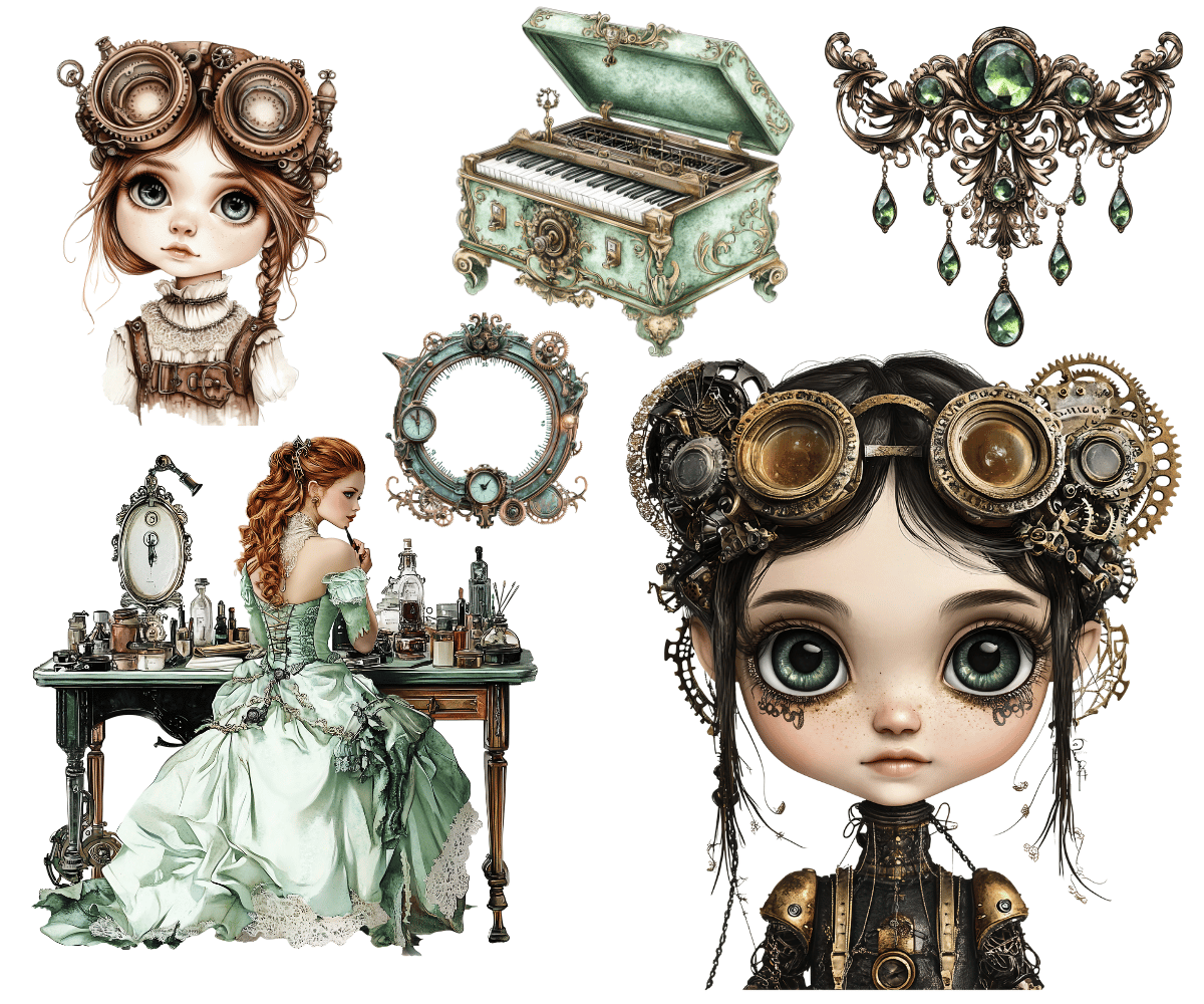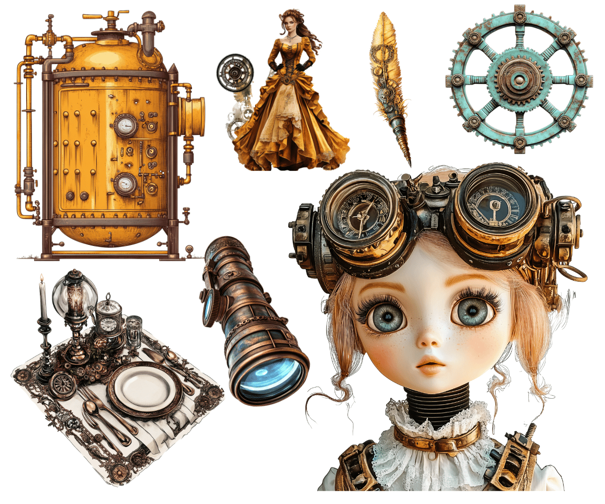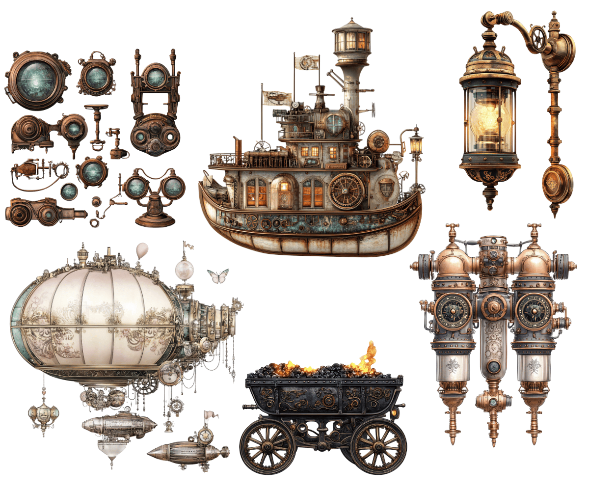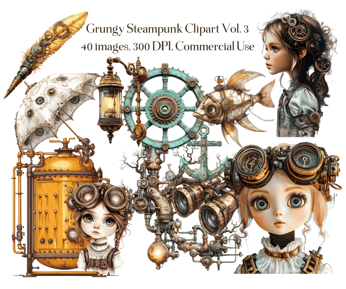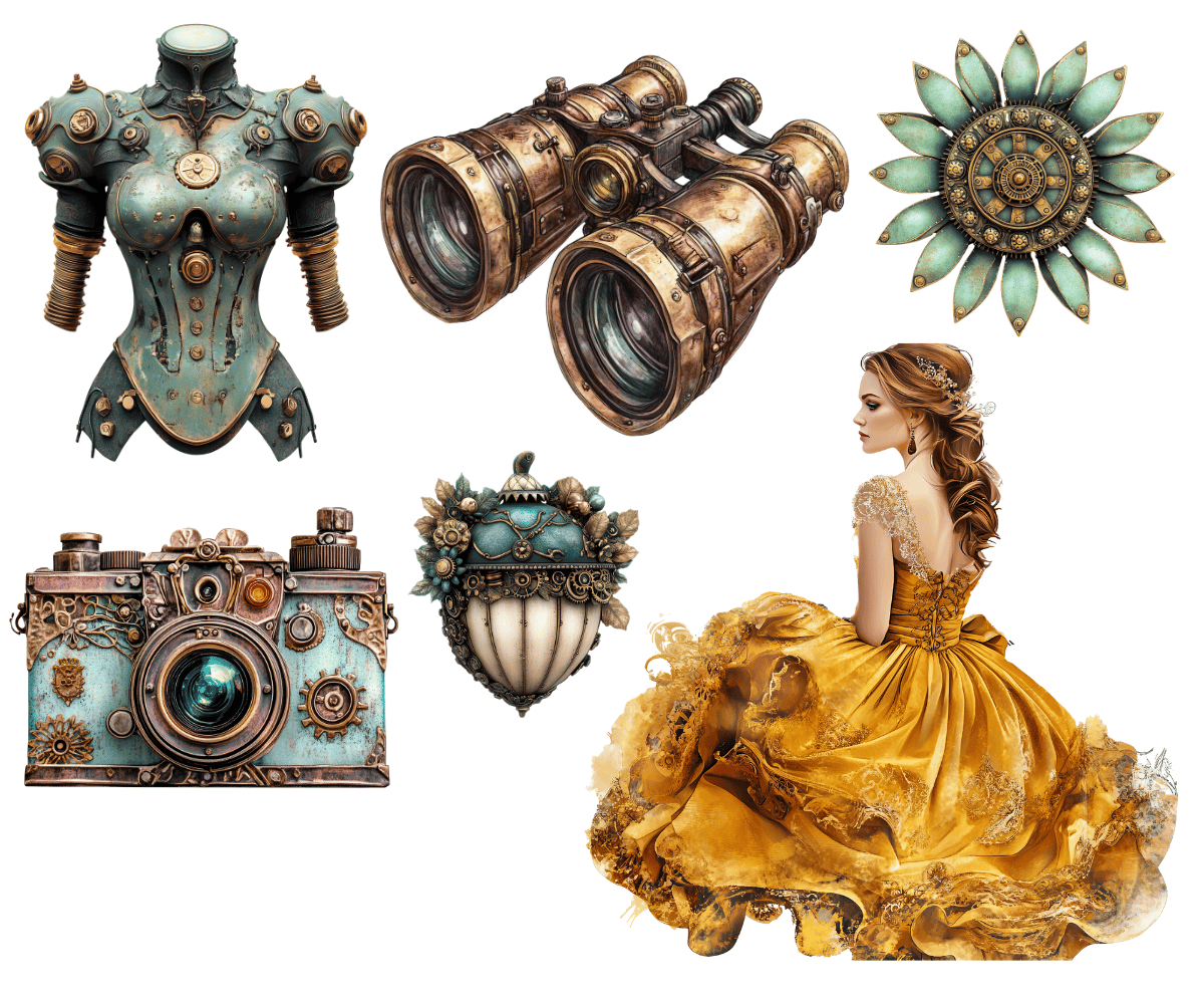 Elevate your crafting projects with our gorgeous Grungy Steampunk Clipart Volume #3 of 4 - 40 PNGs available for commercial use. Perfect for instant download and sublimation design. Clipart includes elegantly styled elements suitable for crafting projects in gorgeous tones. Ideal for digital art, printable clipart, and crafting, this set is a must-have for creating charming arts and crafts designs. In fact, cut them out and place them on your planners to make for an extra special gift for an organizer.