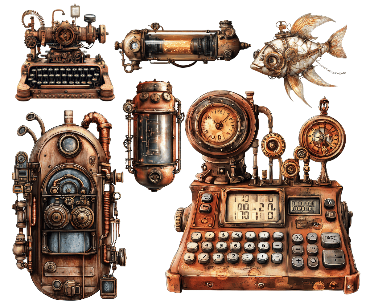 Steampunk Digital Paper, Steampunk PNG, Steampunk Clipart, Victorian Steampunk Papers, Steampunk Digital Download, Steampunk Ephemera, Industrial Grunge Paper