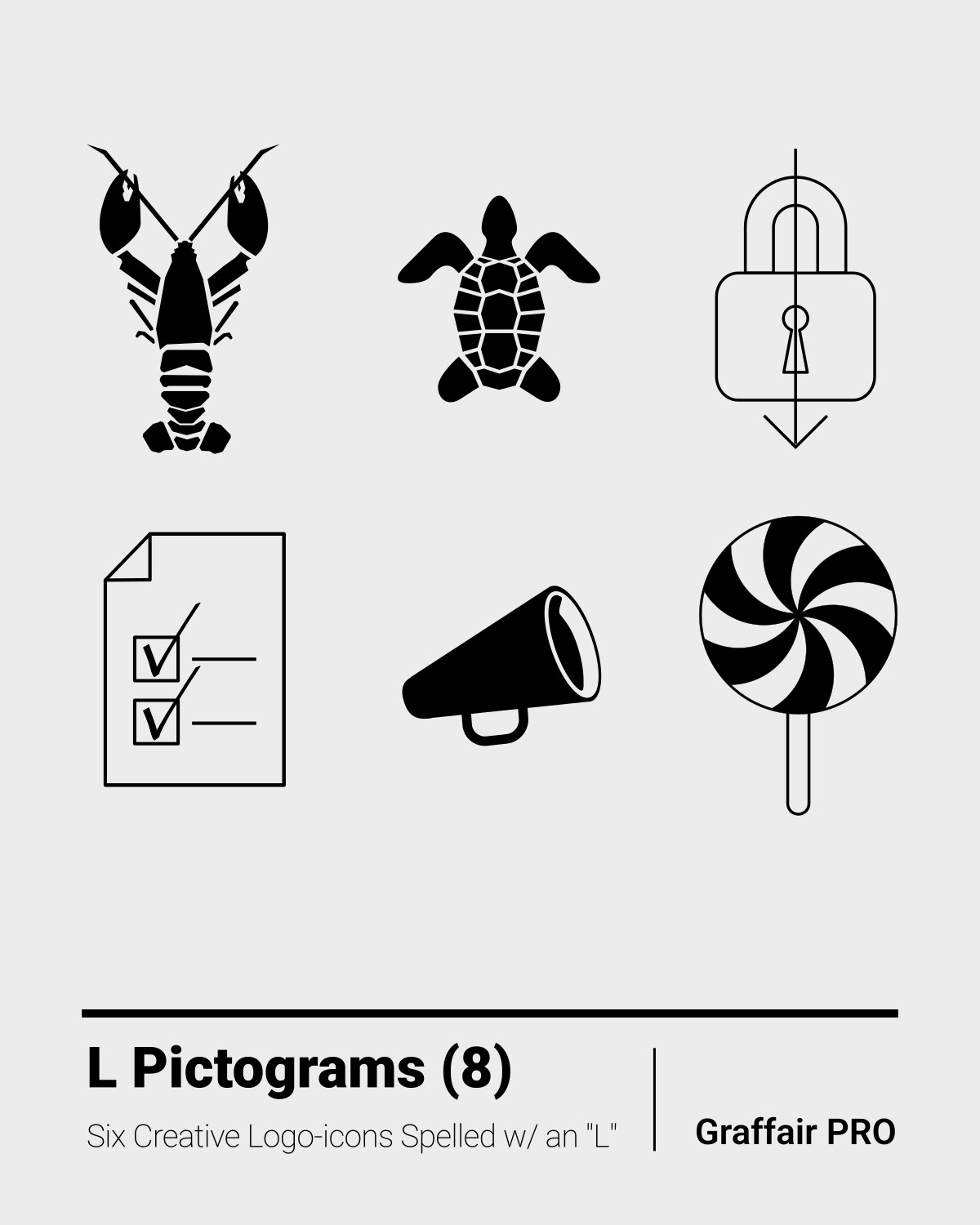 L Pictograms (8): The 8th set of 6 pictograms, each beginning with an "L".