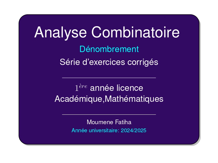 📘 Analyse Combinatoire – Série d’exercices corrigés sur le dénombrement.