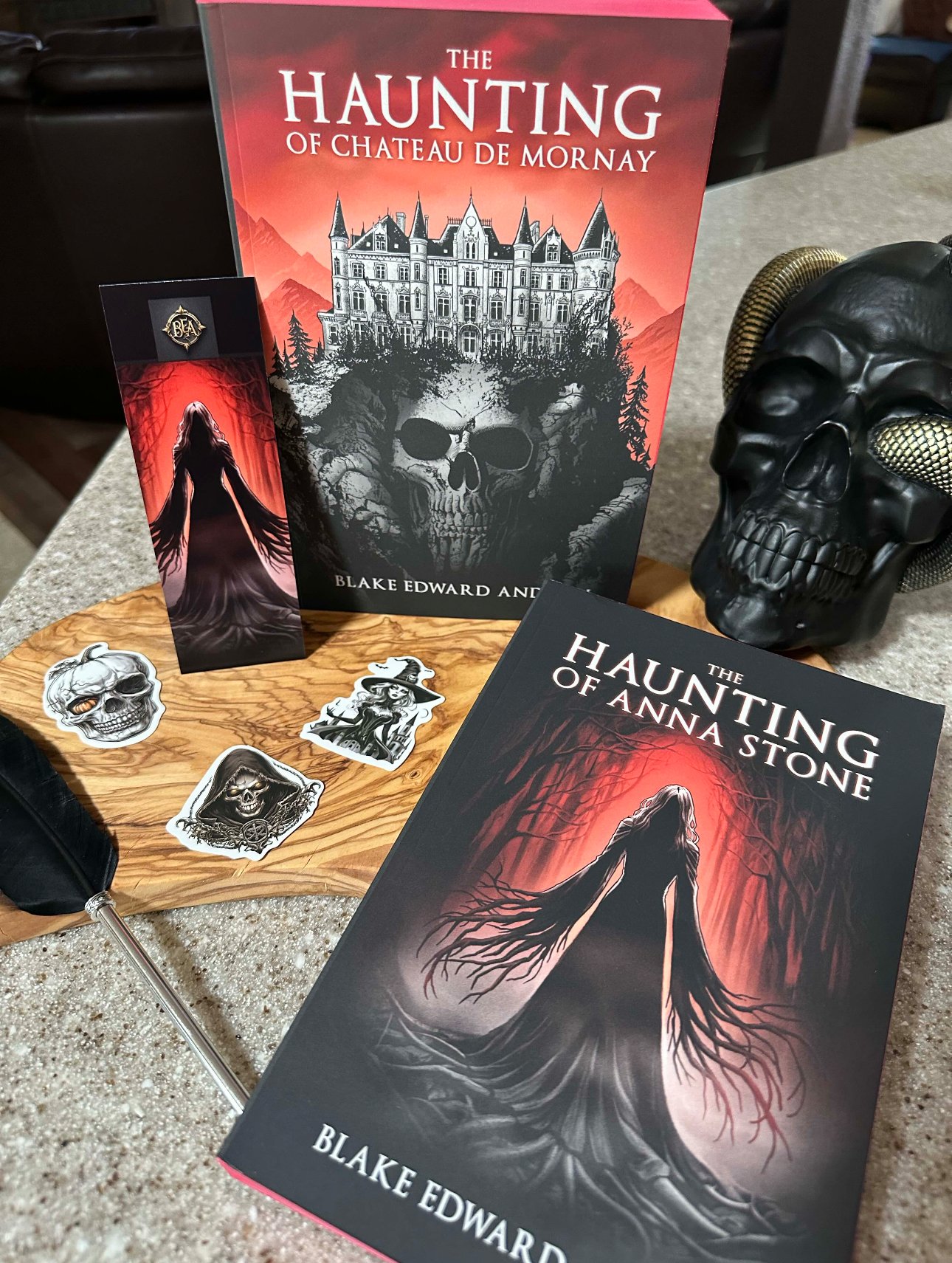 Pick up the first two books of The Haunting Trilogy in paperback format, signed by the author, with shipping and a bookmark included in the price. Red painted edges available for the red books.