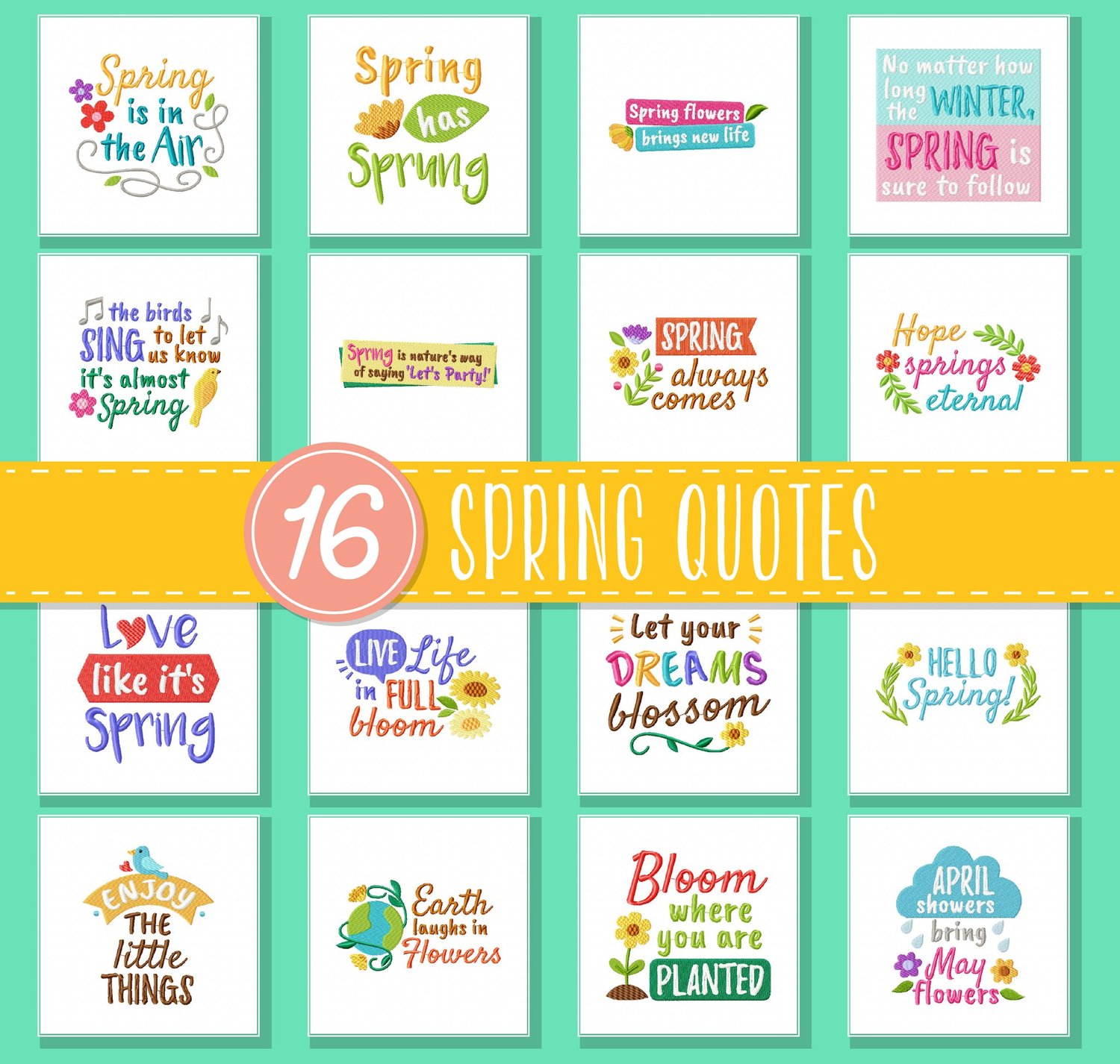Machine embroidery design bundle, spring time quotes, INSTANT DOWNLOAD