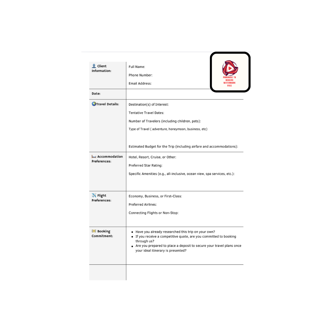Ever spent countless hours planning a dream trip for a potential client, only for them to book elsewhere? Protect your time and ensure commitment upfront with our essential travel planning tools: the Client Intake Form and Travel Services Deposit Agreement.
