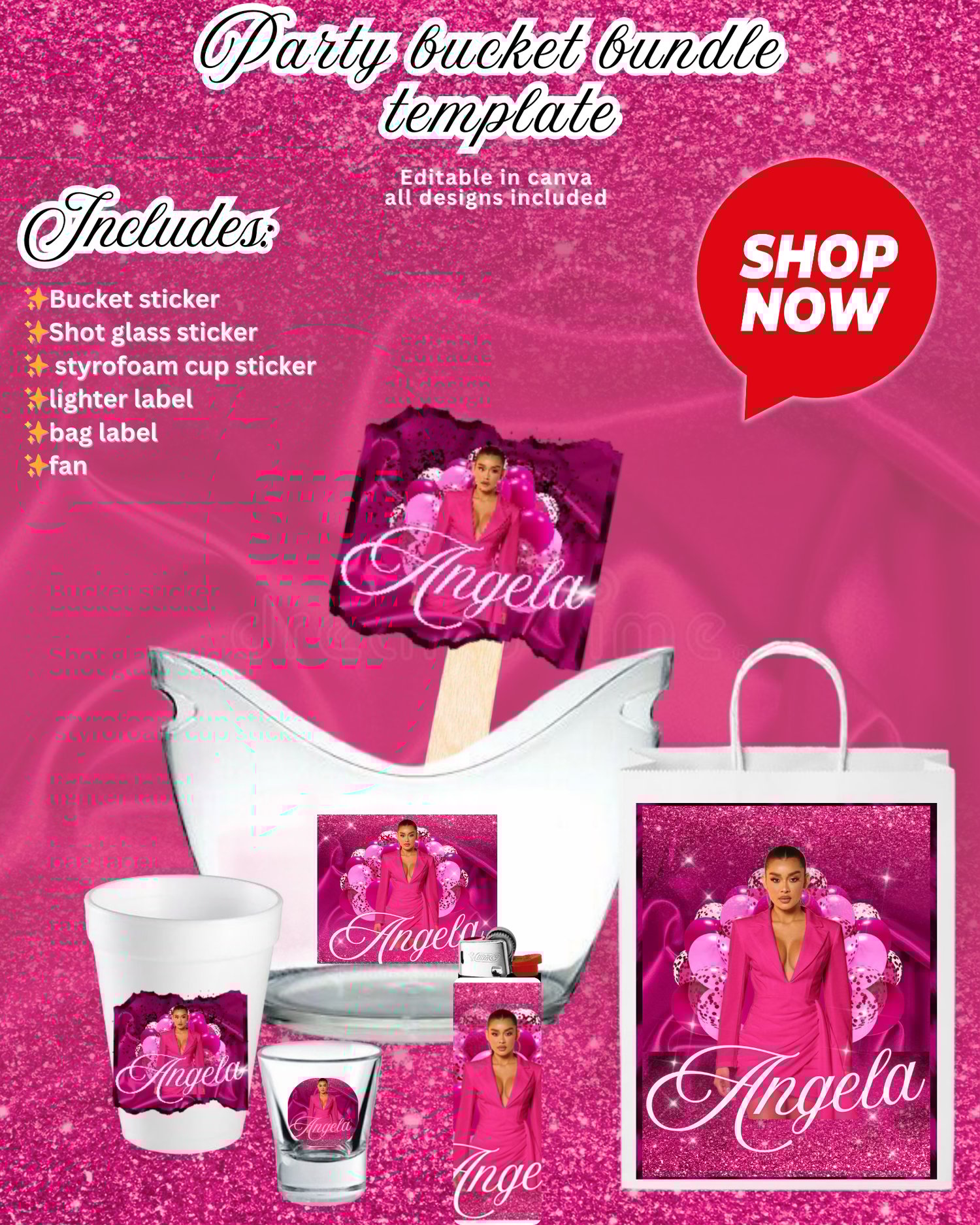 **Pink Party Bucket Bundle Template | Editable Stickers & Labels** 💖✨🎉