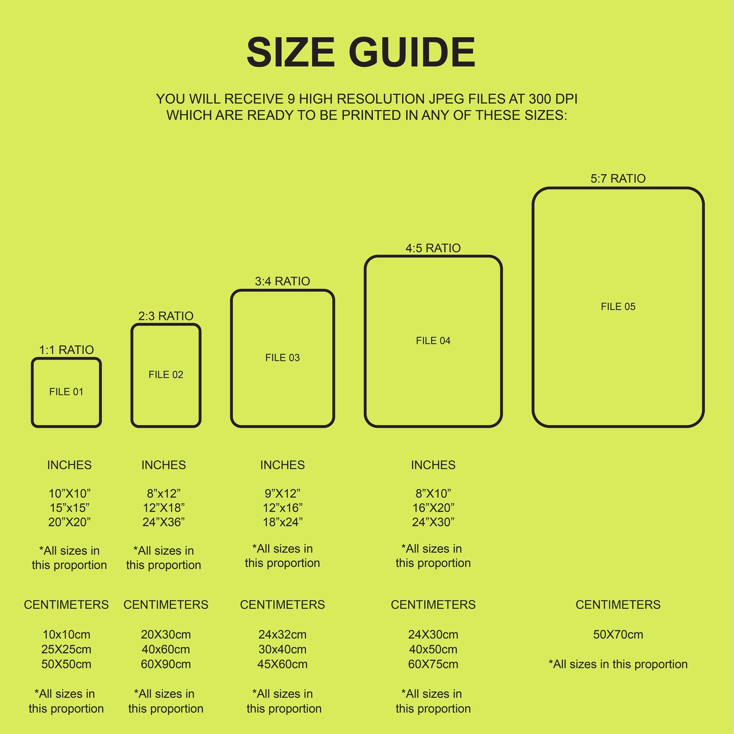 This is a digital product, so no physical item will be shipped to you. Once your purchase is made, you will be provided with an instant download link containing 9 high resolutions JPEG files at 300 DPI and a size guide.