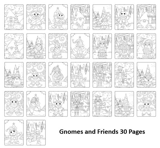 Gnomes and Friends Printable Christmas Coloring Book with 30 Coloring Pages