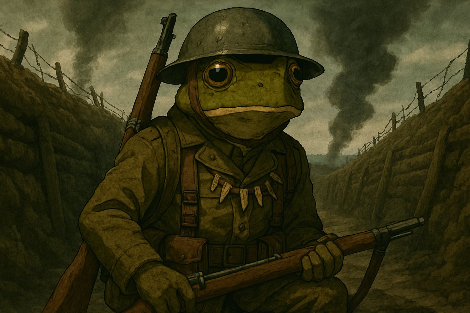 Stand at attention with the Soldier Frog, a brave and disciplined amphibian ready for duty. With uniformed attire, medals, and a determined gaze, this illustration combines military precision with charming frog character design.