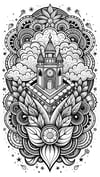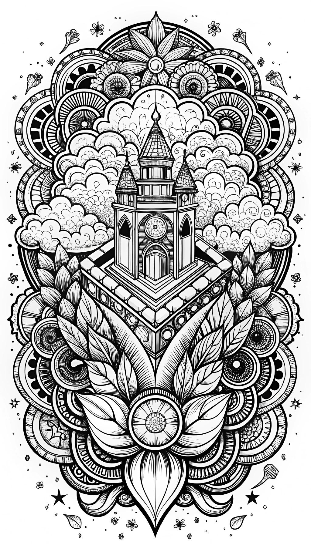 - Whimsical Voyages: Ornate hot air balloons and architectural wonders floating through doodle-style clouds.