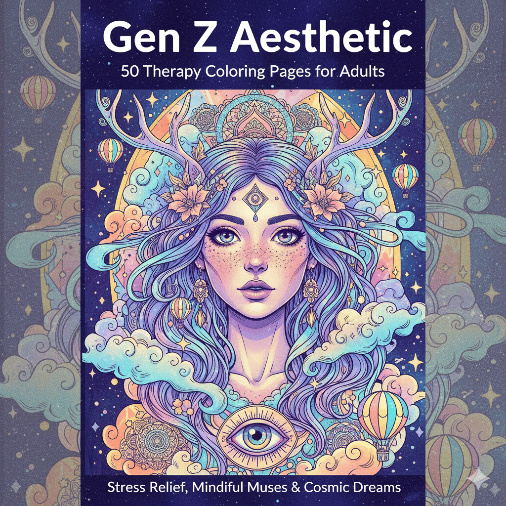 Gen Z Aesthetic Subtitle: 50 Therapy Coloring Pages for Adults: Dreamy Muses, Cosmic Moods, and Intricate Patterns for Stress Relief