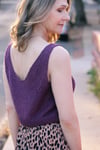 Construction: New Dune features a sleek and streamlined tank strap, and a modern cropped length to wear with all of our high-waisted pants and skirts. The classic tank architecture has slim shoulders, a deep V back neck, and smooth stockinette body with a deep ribbed hem. Cast on provisionally at the shoulders, the back and front are each worked back and forth to the armscye depth, then the body is joined and worked in the round to the bottom of the hem. Slipped stitches create a minimalist, clean edge, and the only other finishing is closing the shoulders with a 3-needle bind off.