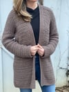 Love texture? The Southern Sunset Cardigan creates a modern fun texture. This size inclusive, long, relaxed cardigan is designed to fit with 6-8 inches of positive ease. Pattern provides instructions for nine different sizes XS-5XL. Along with allowing modifications for length, the pattern also provides directions for two different sleeve widths, allowing for you to customize it to your own body. #sizeinclusive