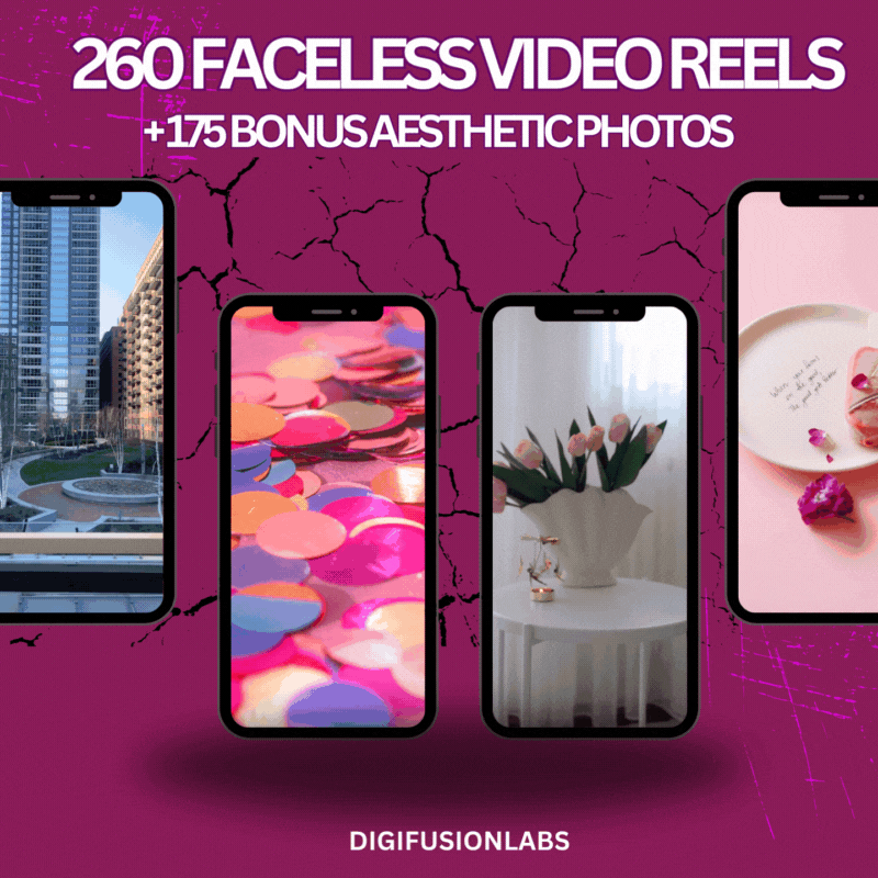260 FACELESS REELS VIDEOS | BONUS: 175 Aesthetic Photos | Digital Marketing | Social Media