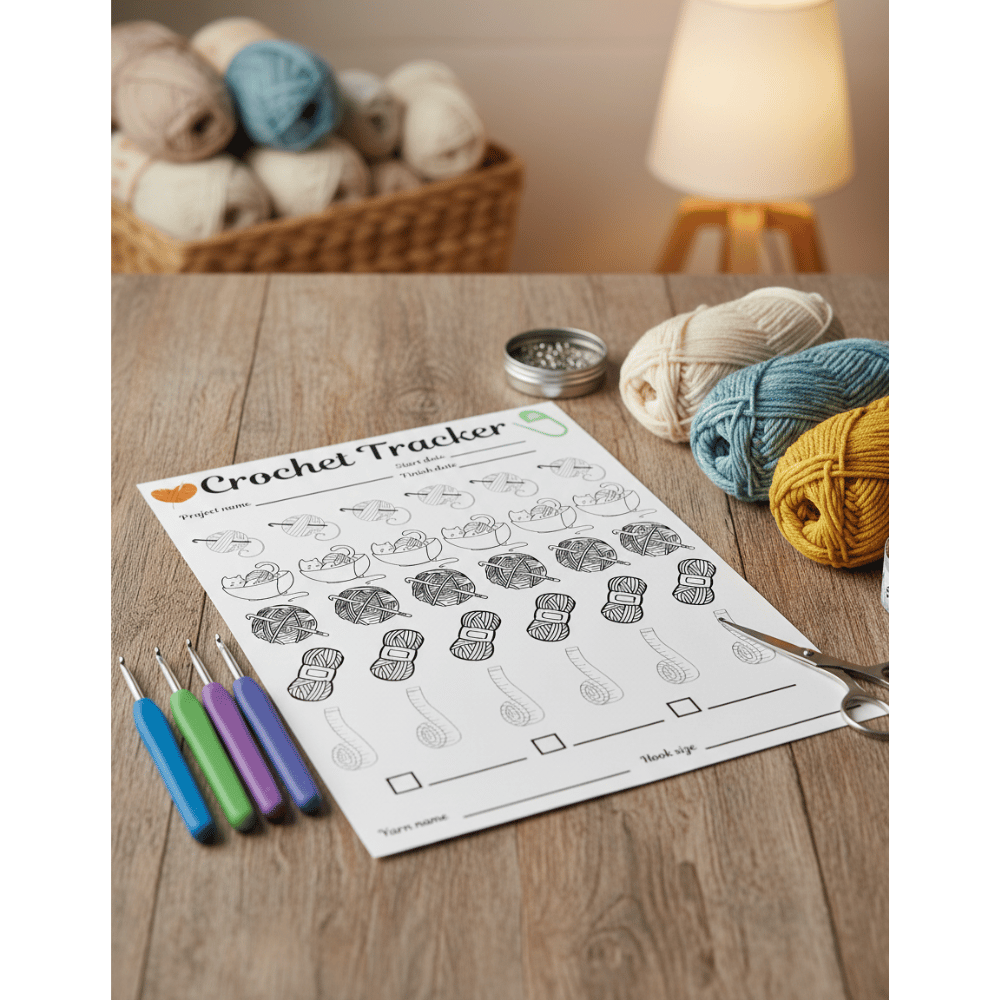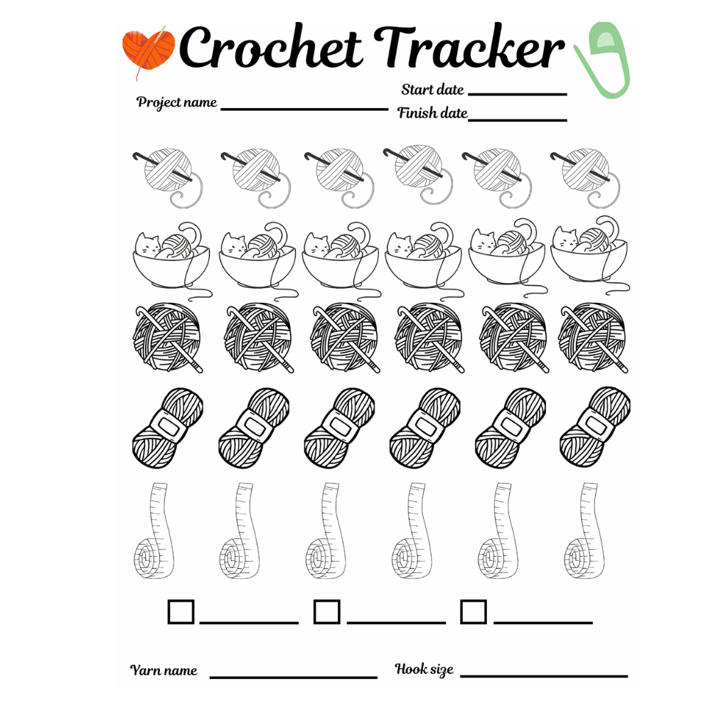 This is a printable page, print as many times as you like. Help yourself stay on track this year with a crochet tracker. Easy to use printable, track every row you crochet and stay motivated while you watch your progress grow.