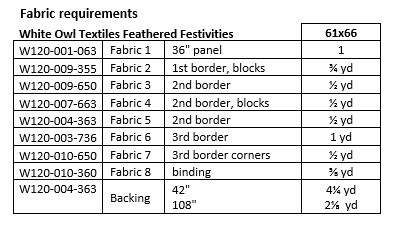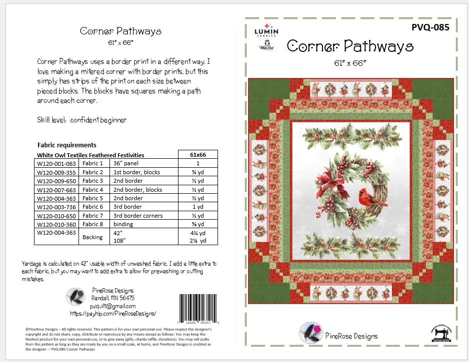 #pinerosedesigns #cornerpathways #whiteowltextiles #featheredfestivities #lumin #islandbatik #lapquilt #panel #borderprint