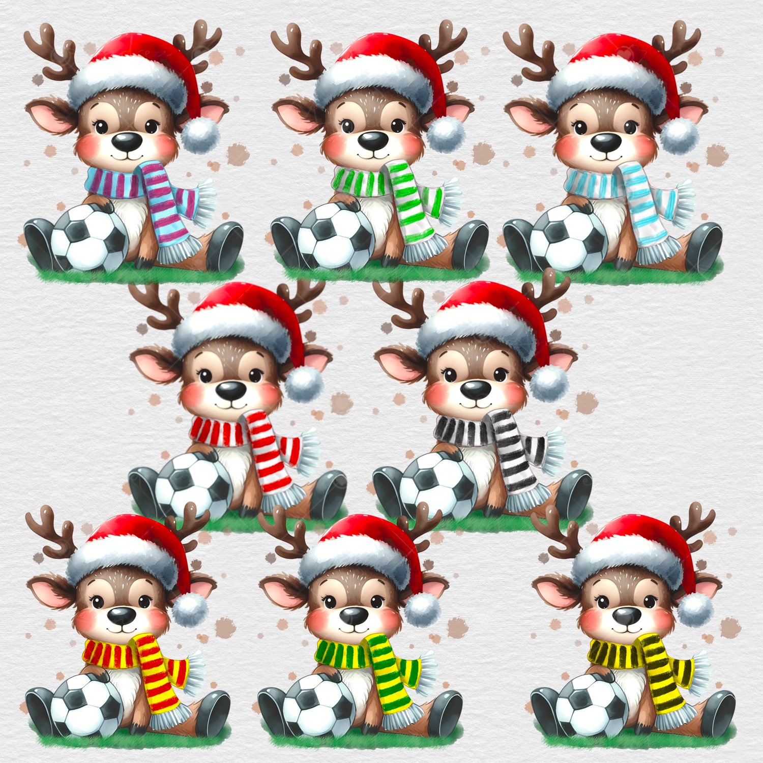 Football/Soccer Christmas Reindeer. 8 reindeer with different coloured scarf for your favourite team. 8 PNGs