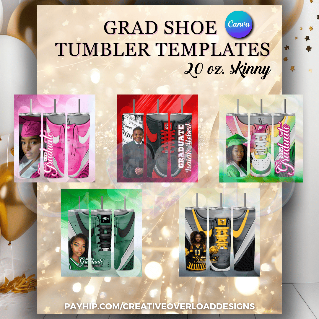 Celebrate graduation with style, personality, and a polished finish. This editable graduation tennis shoe tumbler template bundle is designed to help you create standout 20oz skinny tumblers that feel custom, intentional, and worthy of the moment.