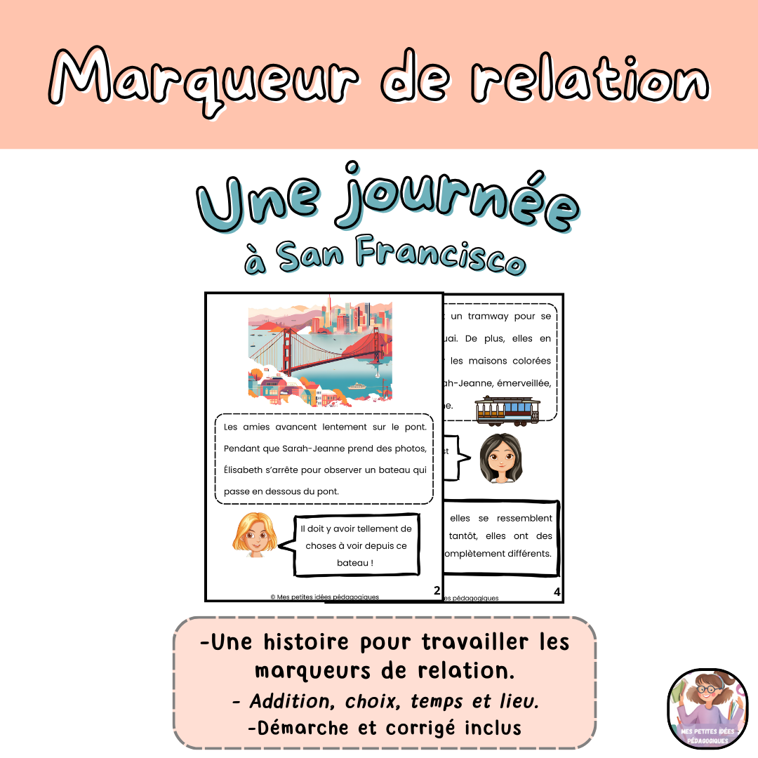 Cette histoire permet aux élèves de travailler les marqueurs de relation des sens addition, choix, temps et lieu.