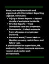 - Record injuries and illnesses in detail.