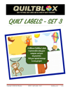 EACH QUILTBLOX QUILT LABEL SET INCLUDES 4 DIFFERENT DESIGNS - each provided to you - with and without lines to make it easy to either customize your message using your favorite software program or print out on your own fabric and hand write your message.