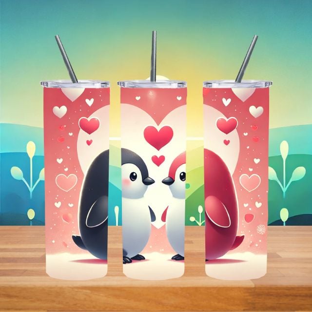 Celebrate love and charm this Valentine’s Day with our adorable 20oz tumbler featuring two penguins in a loving pose! Surrounded by a vibrant pink and red gradient background with floating hearts, this tumbler is the perfect way to spread holiday cheer and warmth.