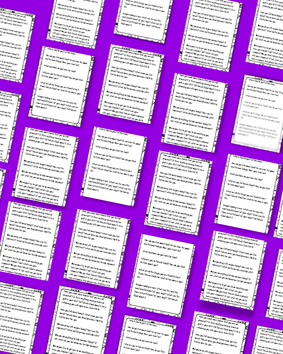 These questions give kiddos ideas for prayer and art journaling. This resource allows children (and even adults) to self-reflect with Yahweh. If your kiddo is not a journaler, you may use this same resource to start biblical and restorative conversations!