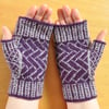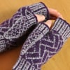 Knitted in the round, these Brickazag Mitts have thumb gussets and corrugated ribs with lice for extra interest. Instructions for left and right mitts are identical; the stripe above and below the thumb prevents a pattern jog at the beginning of the round.