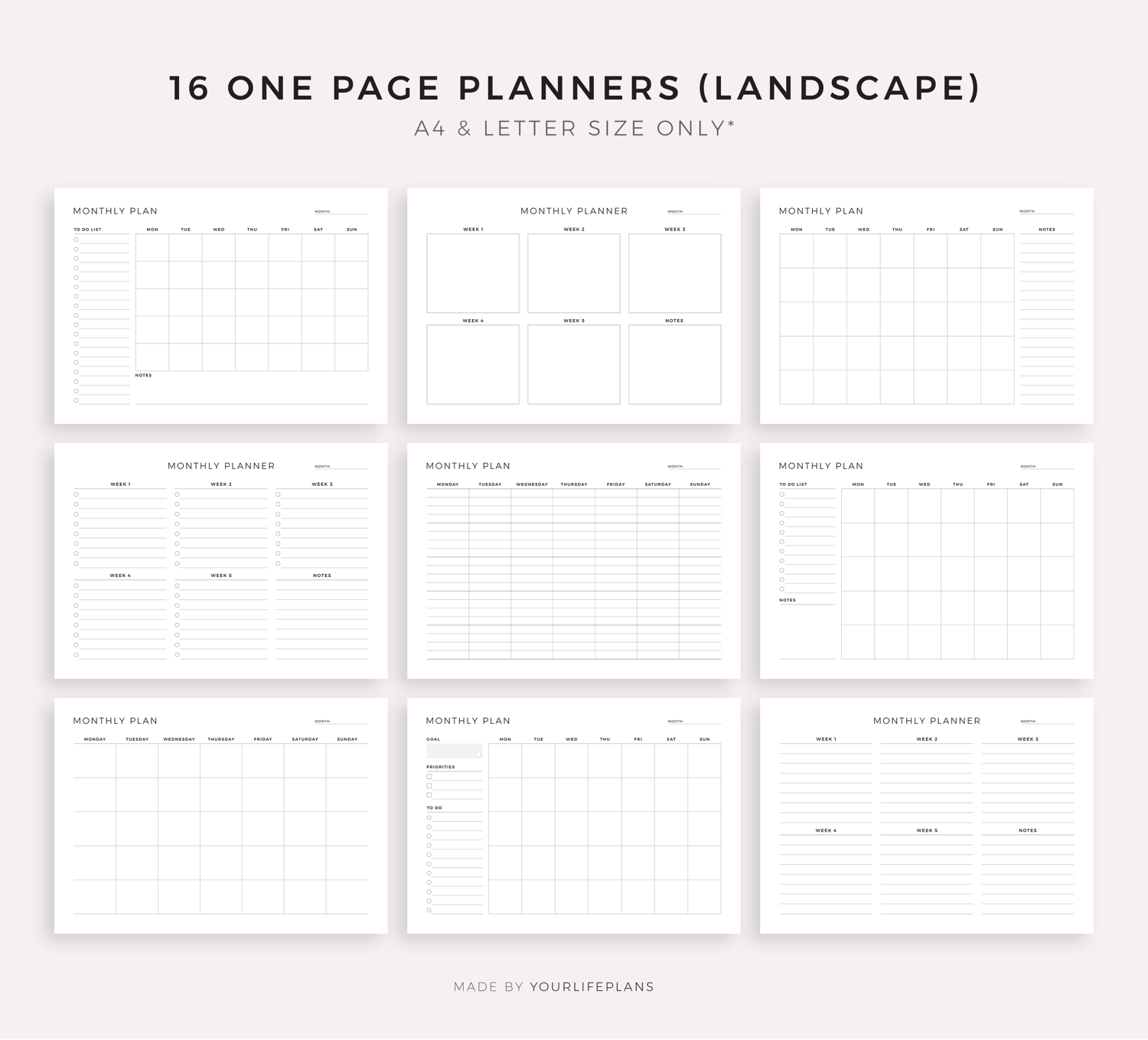 • Includes A4, Letter, and Fillable(A4) planners