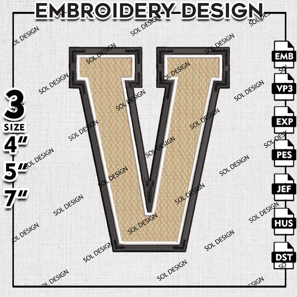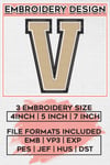 Vanderbilt Commodores College Football Team V Letter Logo Embroidery Designs, NCAA Vanderbilt Commodores Machine Embroidery Files, NCAA Logo embroidery designs, NCAA Vanderbilt Logo, Digital Download