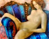 Alain Bonnefoit’s trademark female nudes reflect both Western and Eastern arthistorical influences. A painter, engraver, and sculptor, Bonnefoit was mentored