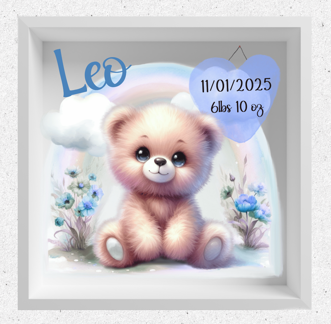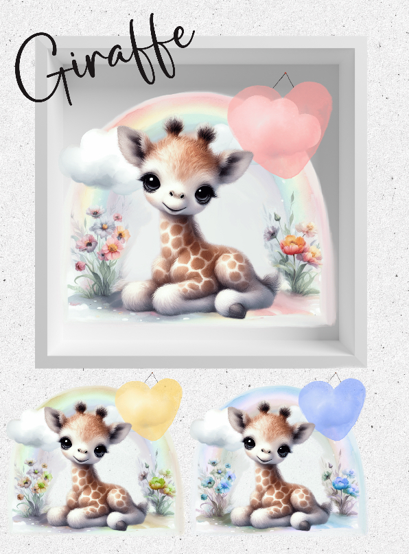 Adorable baby animals nursery design bundle; giraffe, teddy bear, Highland cow, elephant and hedgehog in blue, pink, lemon, with large heart to personalise. 15 PNGs. Sublimation, print, DTF Sublimation, print, DTF etc. Prints, clothing, cards etc. No physical products or text supplied.