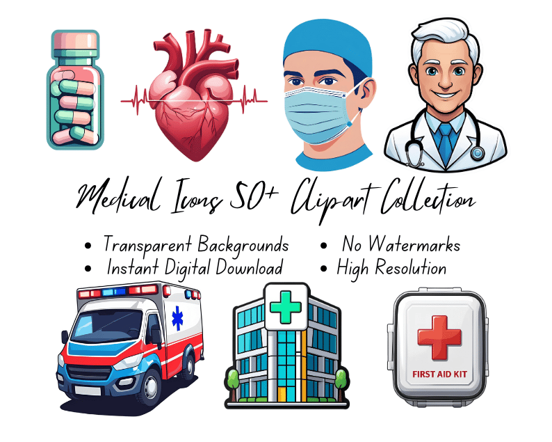 Medical Icons 50+ Clipart Collection | High-Resolution Digital Printables | Instant Download | No Watermark