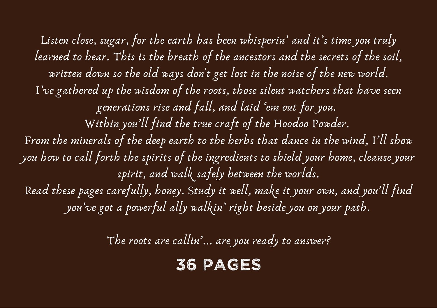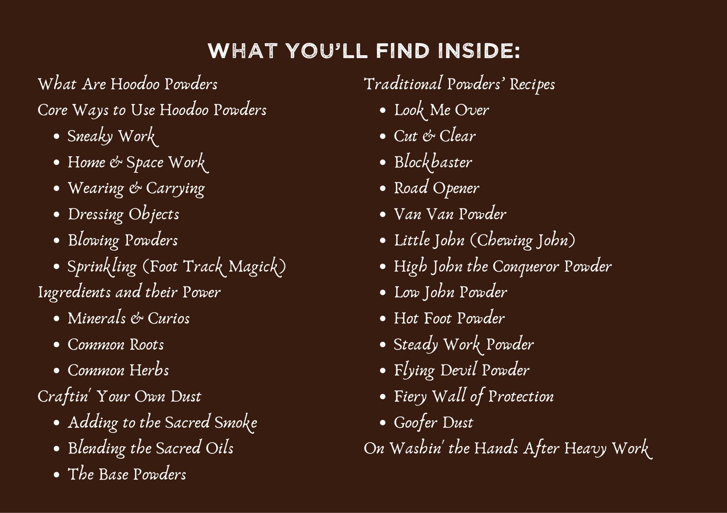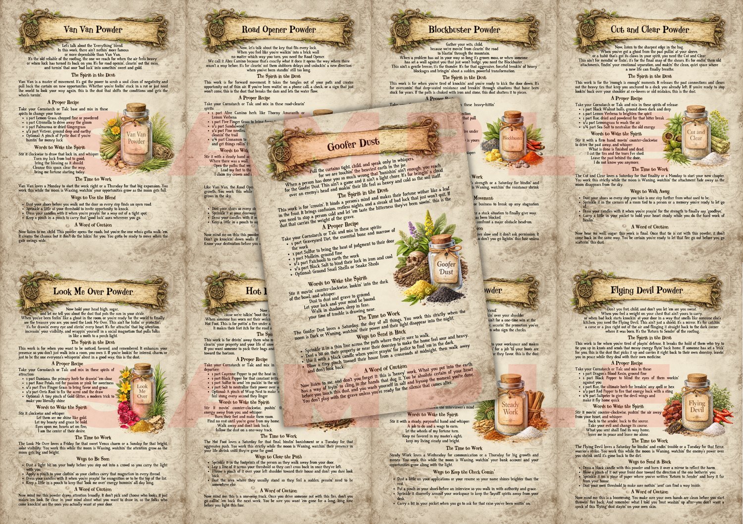 Within you’ll find the true craft of the Hoodoo Powder.