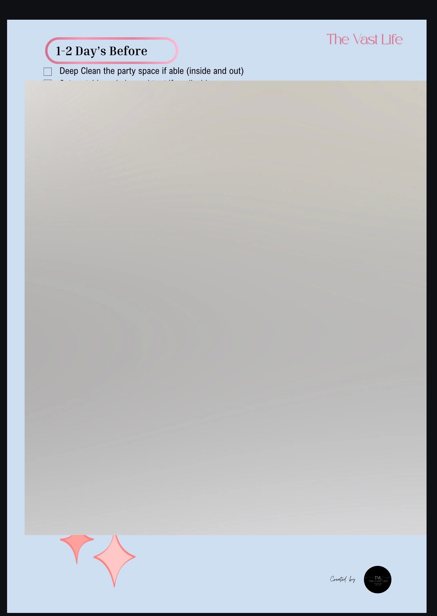 The Vast Life is Thrilled to share our Cleaning Checklist as well as tips and tricks we have learned over the years. Amy worked in Canva to create her checklist of a True Clean or as most would call it a DEEP CLEAN for your home. This one time purchase is your guide to how to get your home to that spotless shine.
