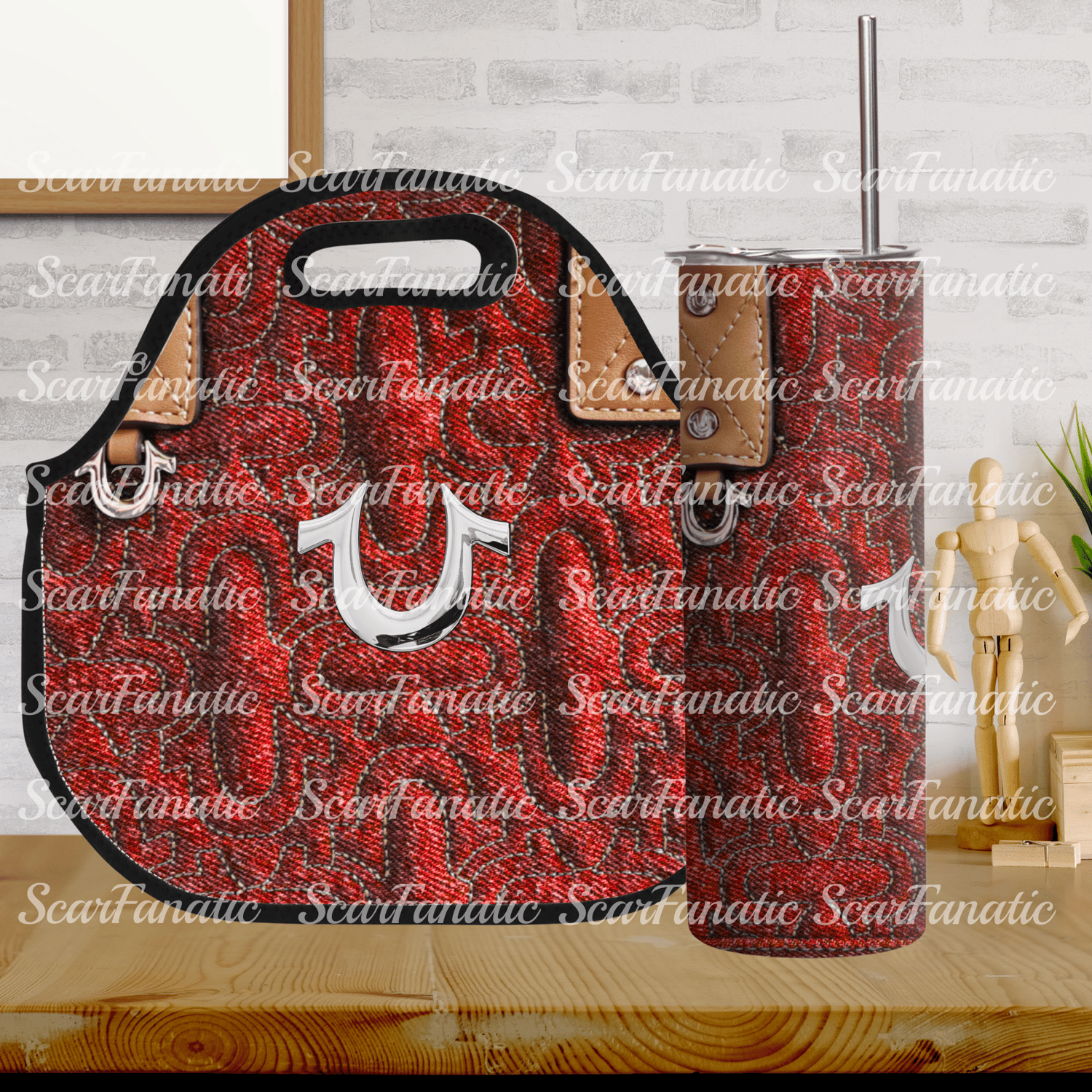 Red Denim and Silver 3D T Rlgn 20oz Tumbler and Lunch Tote PNG Design Bundle