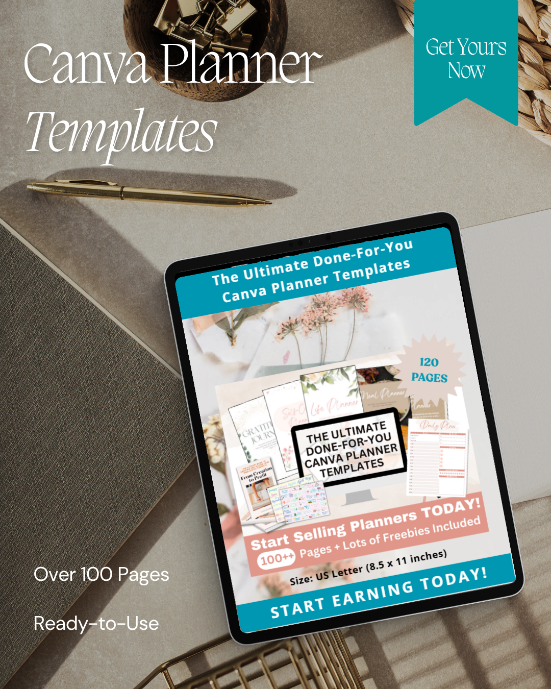 Simplify your digital business and start selling instantly with The Ultimate Done-For-You Canva Planner Templates — your all-in-one solution for creating and reselling beautiful, high-quality planners in minutes.