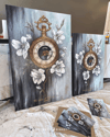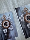 The ornate timepiece represents God’s divine timing, with Esther bowing in humility before the King of Persia and ultimately the King of Kings. Her eyes fixed on the pivotal 4th hour and 14th minute (Esther 4:14). Surrounding her are nine myrtle flowers, symbolizing the fruits of the Spirit she embodied on her mission. The divided background—darkness into light—reflects the weight of her decision to step past fear and into faith, risking everything for God and her people.