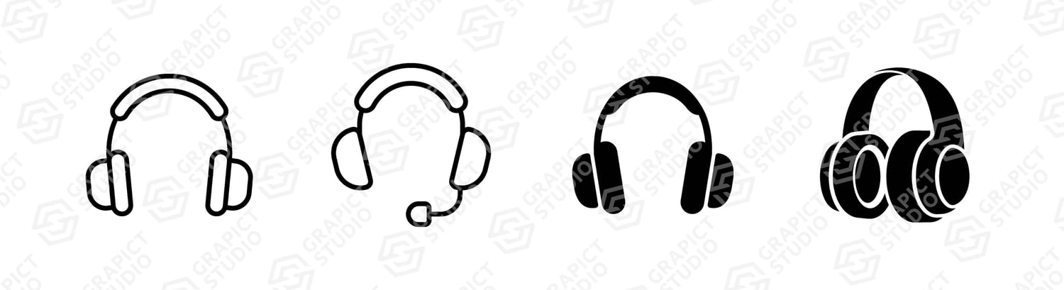 Headphones icon design. Creative illustration outlined style, editable stroke and flat glyph style icon. Vector clipart image, graphic design element.