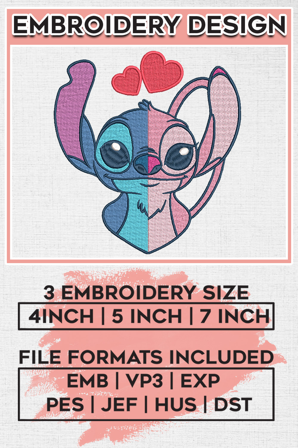 Love Stitch and Angel Embroidery Designs, Lilo and Stitch Machine Embroidery Files, Cartoon Character Machine embroidery designs, Disney, 3 sizes, Digital Download