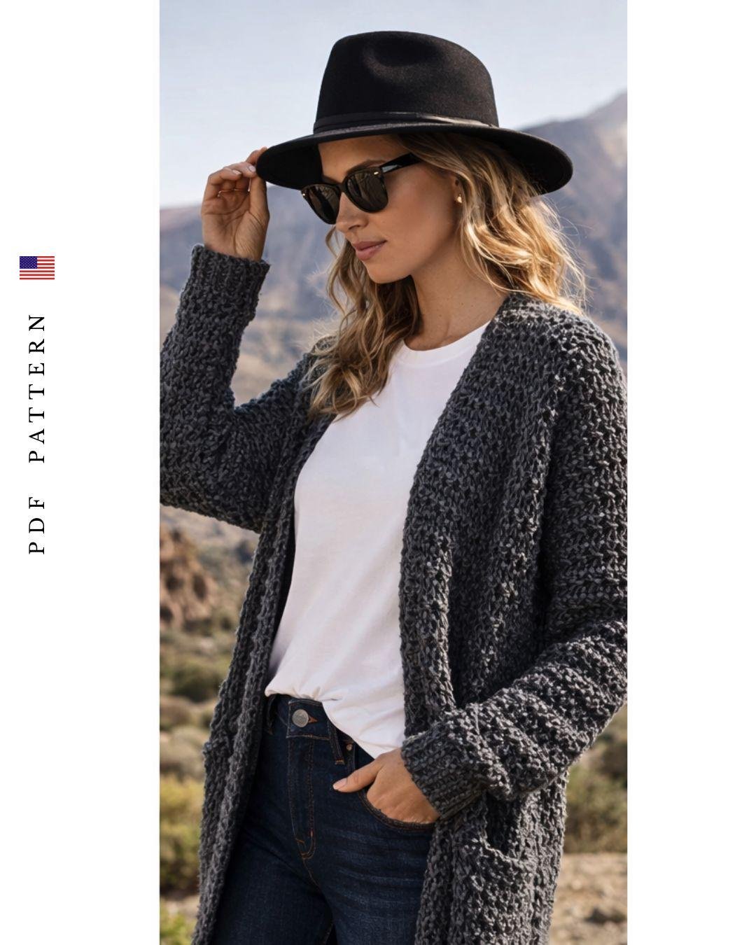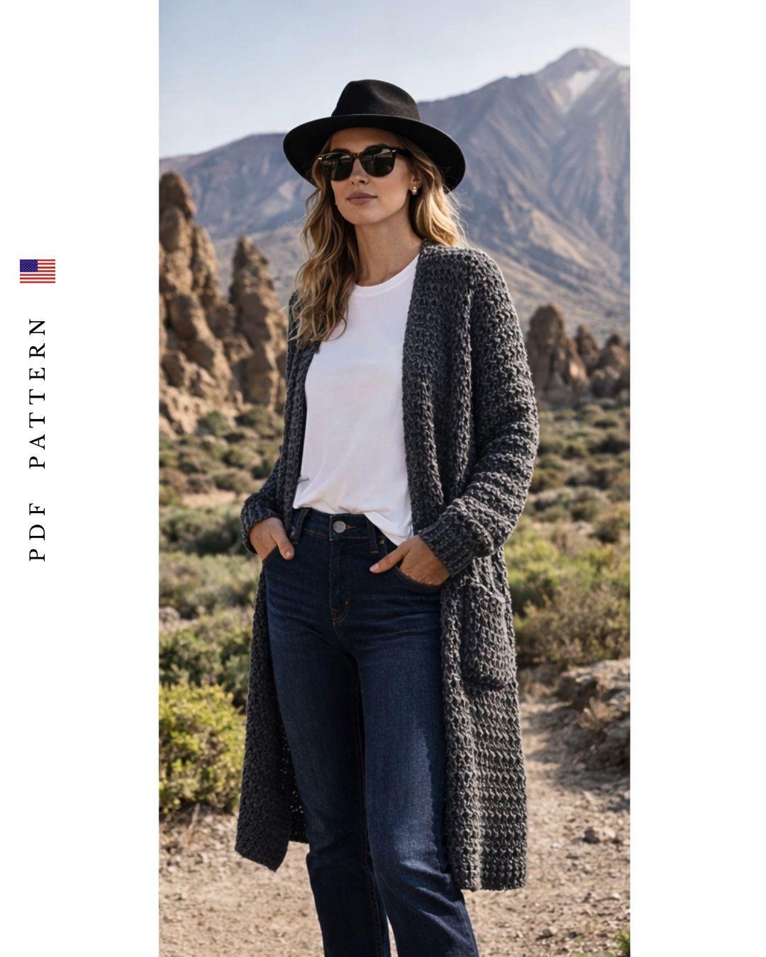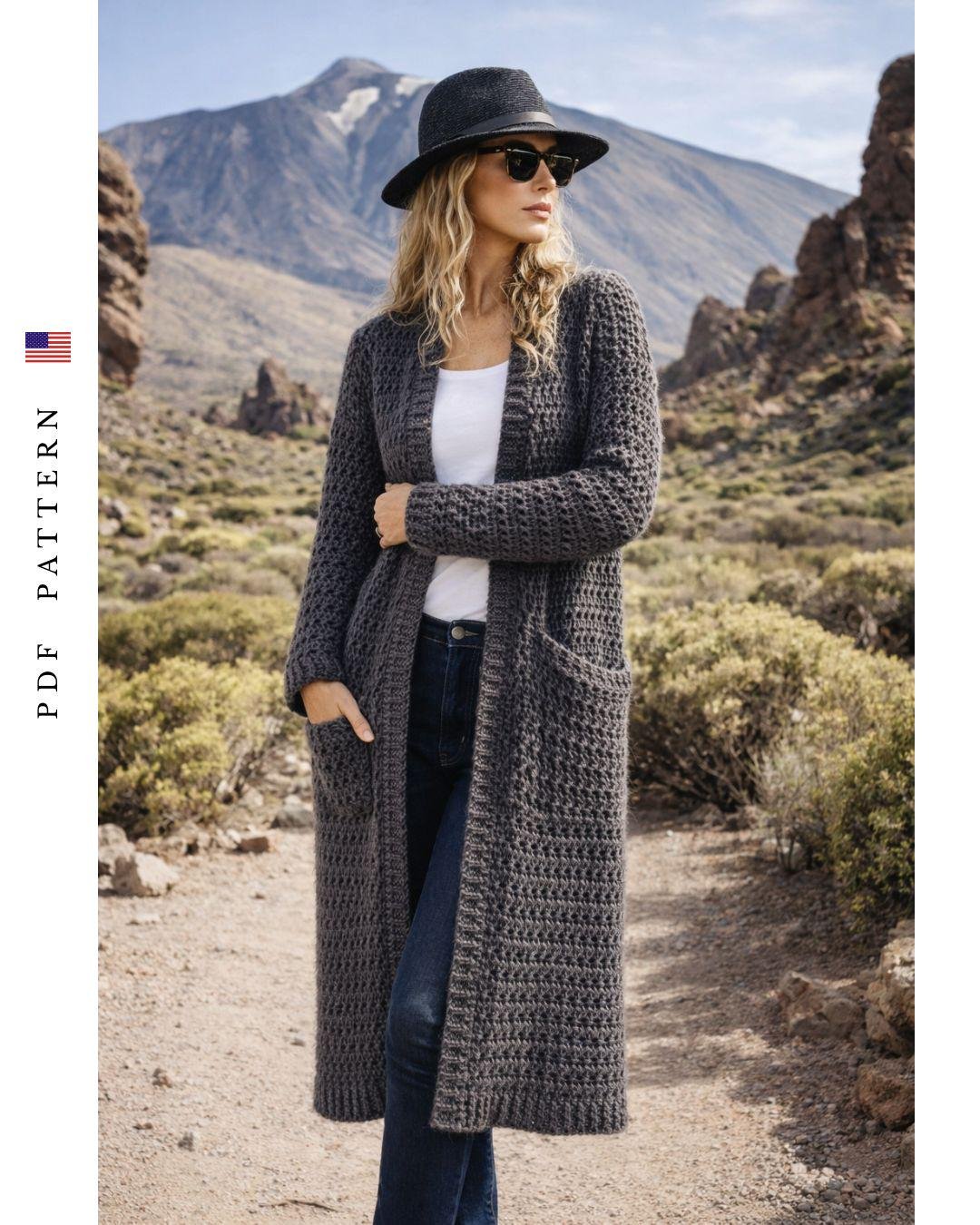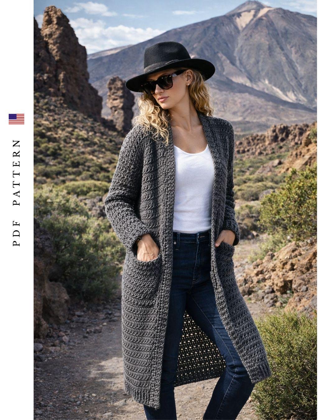 Volcanic Grace Long Cardigan - Crochet Pattern (PDF)