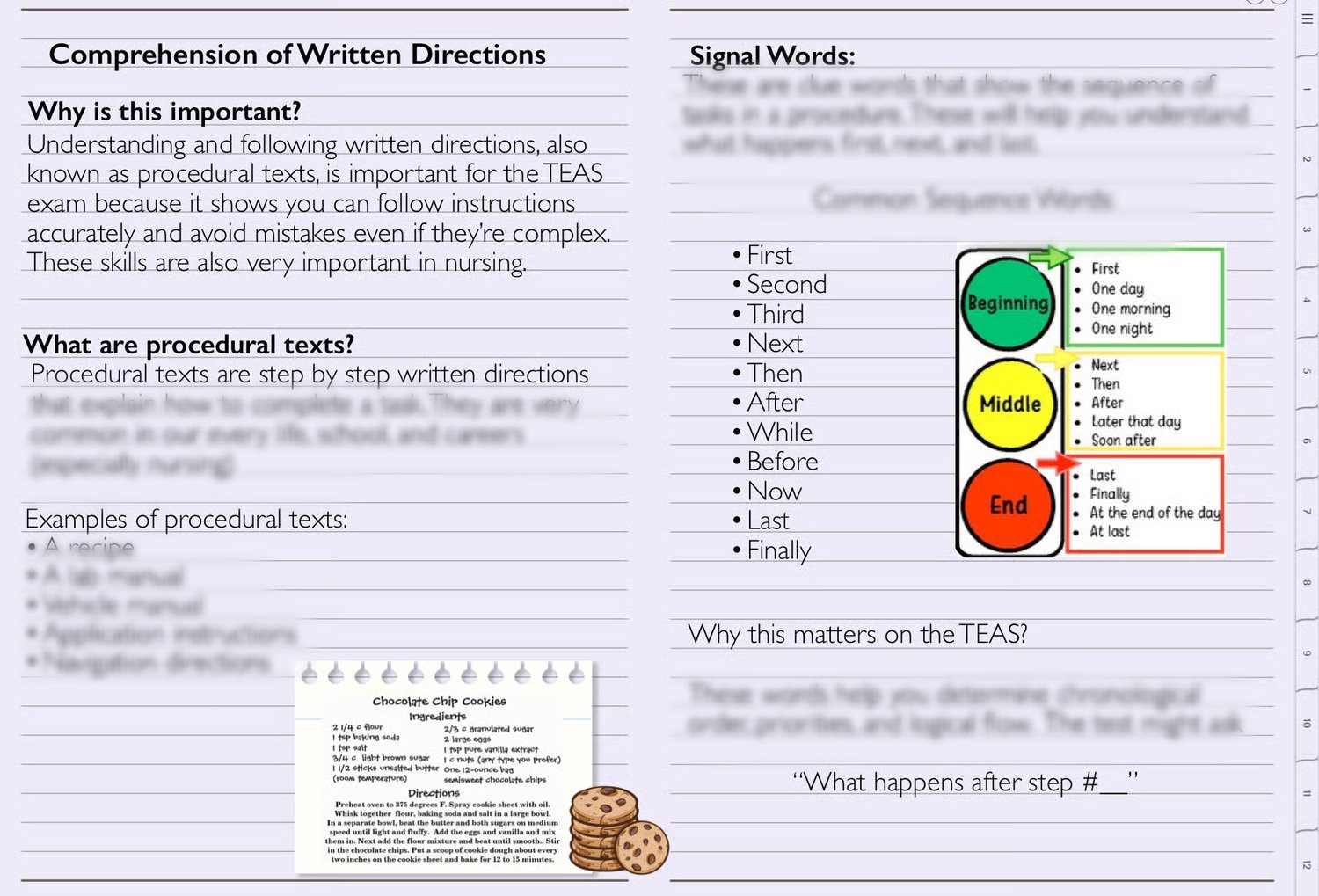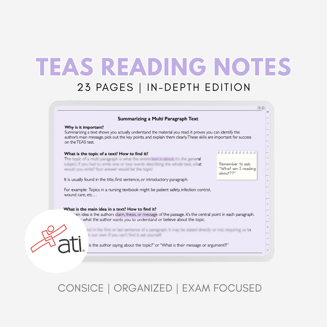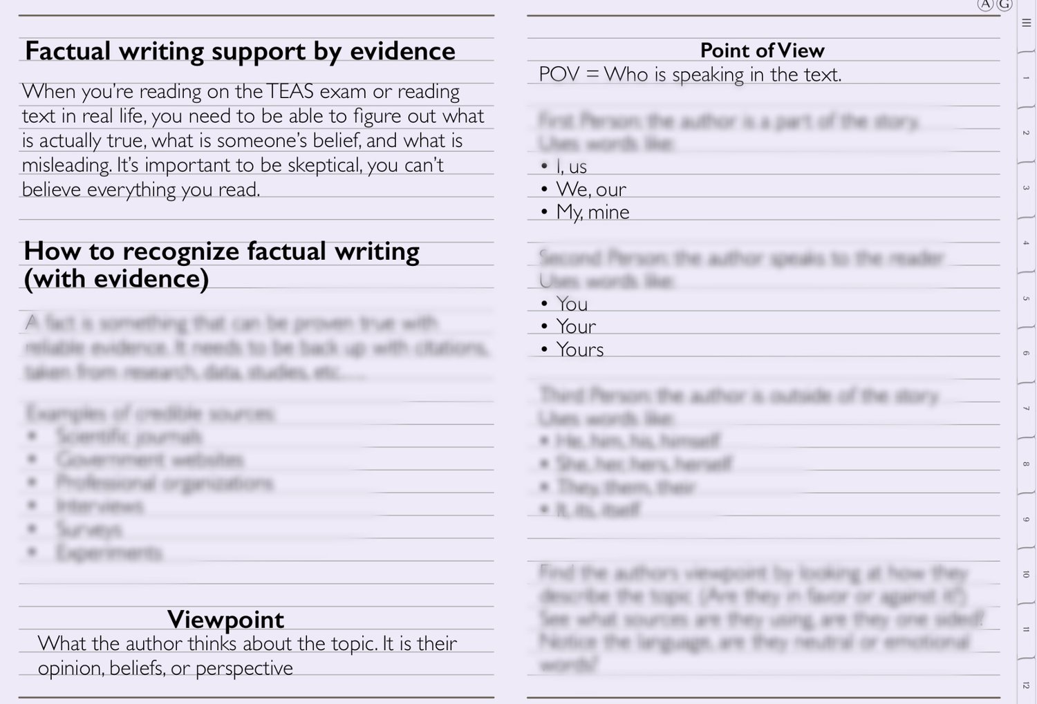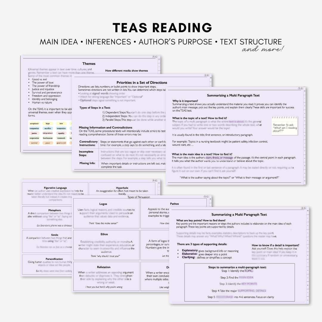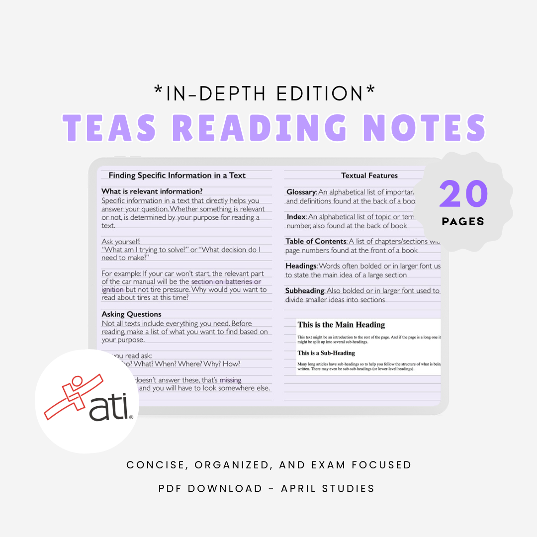 Teas Reading Notes made by me @aprilstudies. These are the notes I used to study for the TEAS exam covering topics on