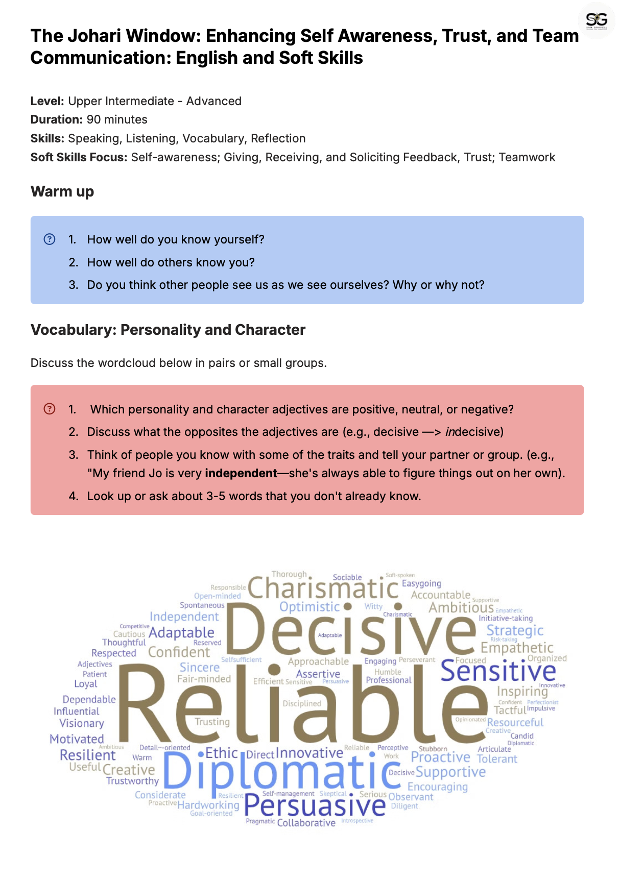 English and Soft Skills: Improving Self Awareness, Trust, and Team Communication